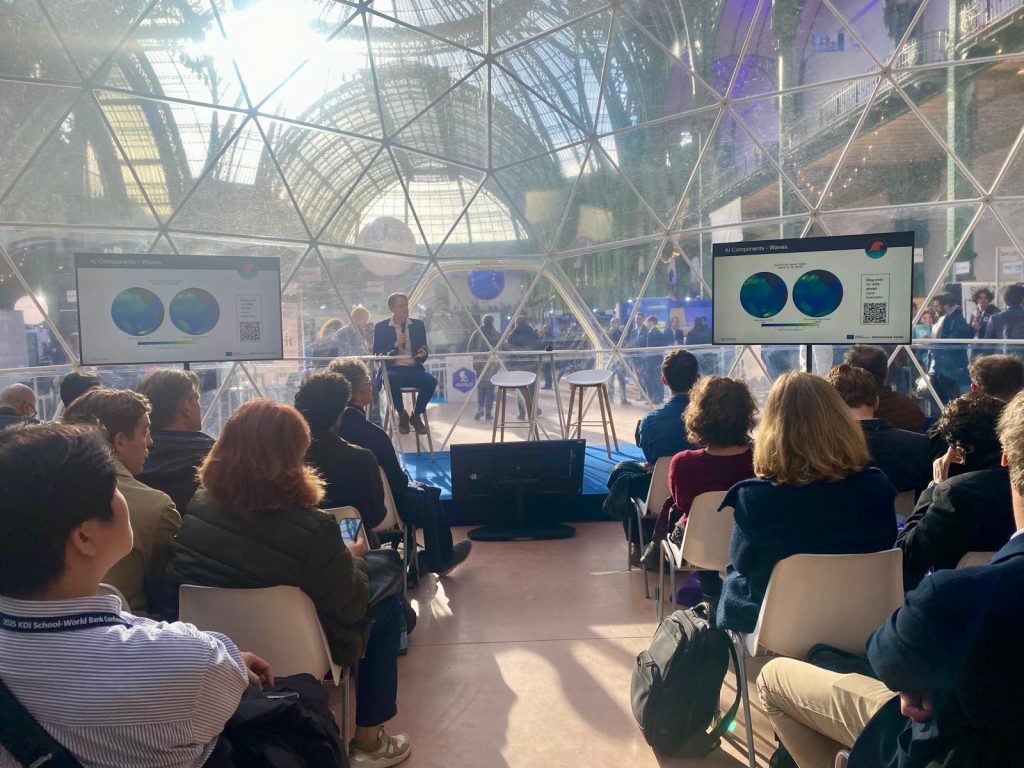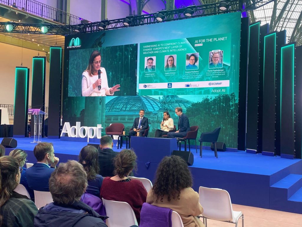 ECMWF took part in Adopt AI, the major Paris event dedicated to artificial intelligence (AI), on 25 and 26 November at the Grand Palais. Through a hands-on demonstration of new AI capabilities at a dedicated booth and two speaking sessions, ECMWF, together with representatives of European partner institutions and Member States, showcased the growing role of AI in weather and climate. The activities highlighted how these methods work in practice, introduced the latest developments at ECMWF, including in EU’s Destination Earth (DestinE) initiative, and demonstrated how European collaborations and supercomputing investments make such advancements possible while supporting climate resilience.