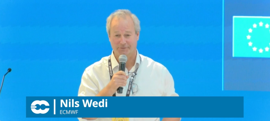 In the keynote talk of the joint session, Nils Wedi, Digital Technology Lead for DestinE highlighted the achievements of ECMWF and its numerous partner organisations around Europe in implementing digital twin technology for the Earth system, a global first, and expanding AI capabilities exploiting recent advances. Nils Wedi also gave an overview of the latest developments in the Climate Change Adaptation Digital Twin (Climate DT), the Weather-induced Extremes Digital Twin (Extremes DT) and the Digital Twin Engine.